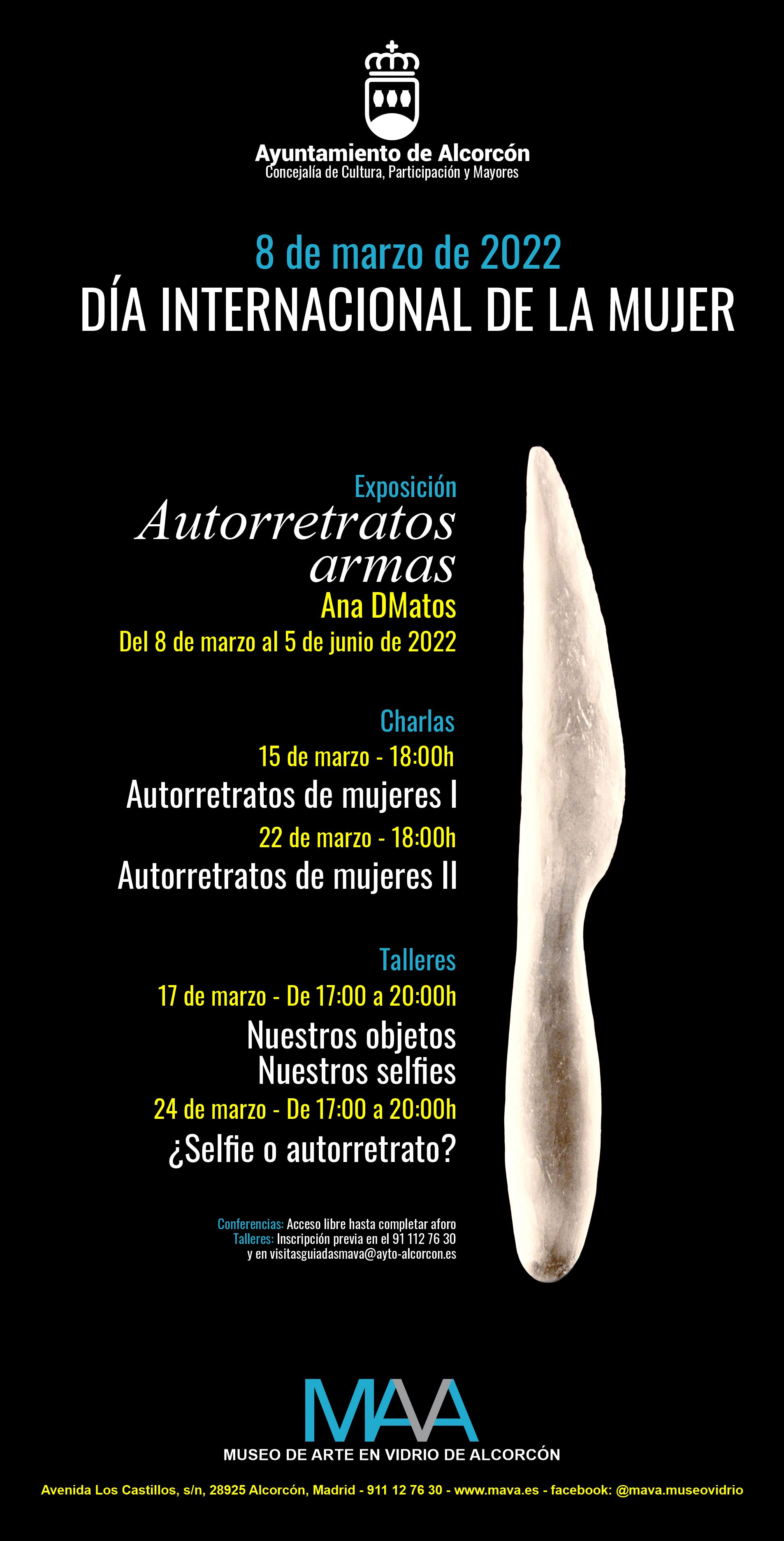 A partir del 15 de marzo comienzan las actividades paralelas que se realizan con motivo de la exposición ‘Autorretratos armas’, de Ana DMato, que permanecerá expuesta hasta el 5 de junio en el Museo de Arte en Vidrio de Alcorcón - MAVA.