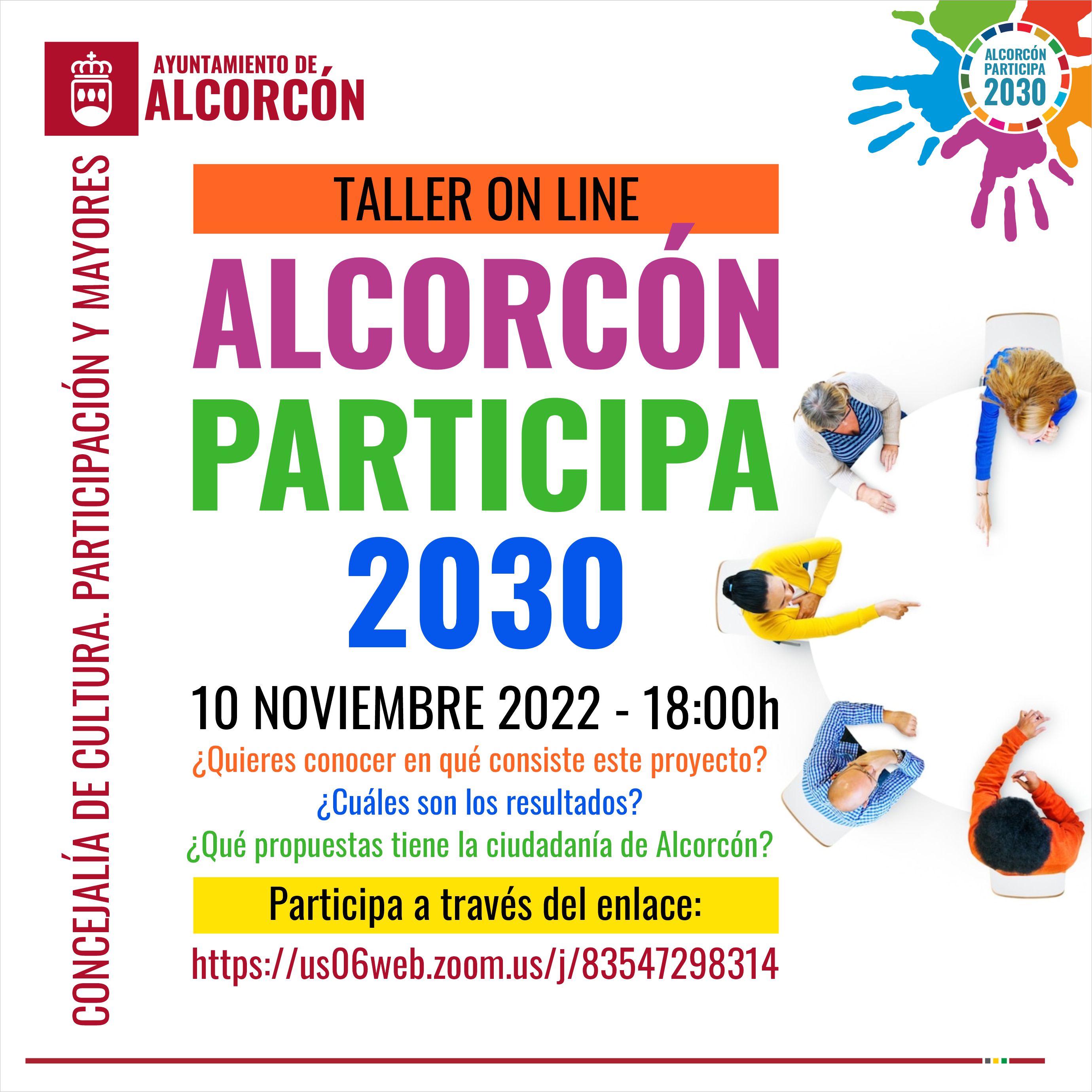 ¿Qué mejoras necesita la ciudad? Si quieres conocer los resultados del diagnóstico social elaborado a raíz de la participación ciudadana o contribuir con tu propuesta -si no lo has hecho todavía-, puedes participar en el taller online 'Alcorcón Participa 2030', programado para las 18 horas de este jueves 10 de noviembre, a través de este enlace. En este evento se darán a conocer las principales demandas e iniciativas de los alcorconeros y alcorconeras y el tejido social de la localidad (entidades sociales, grupos de mujeres, jóvenes...), trasladadas mediante consultas, reunines, encuentros, jornadas, entrevistas en profundidad y aportaciones en la página web durante el pasado curso 21/22.
