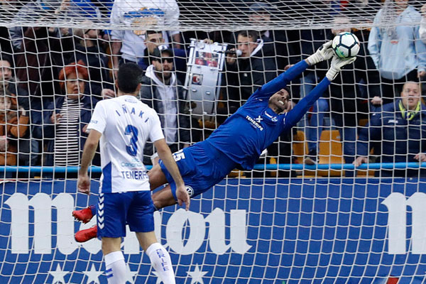 El portero Dani Hernández amargó el partido a nuestros delanteros/ Liga123