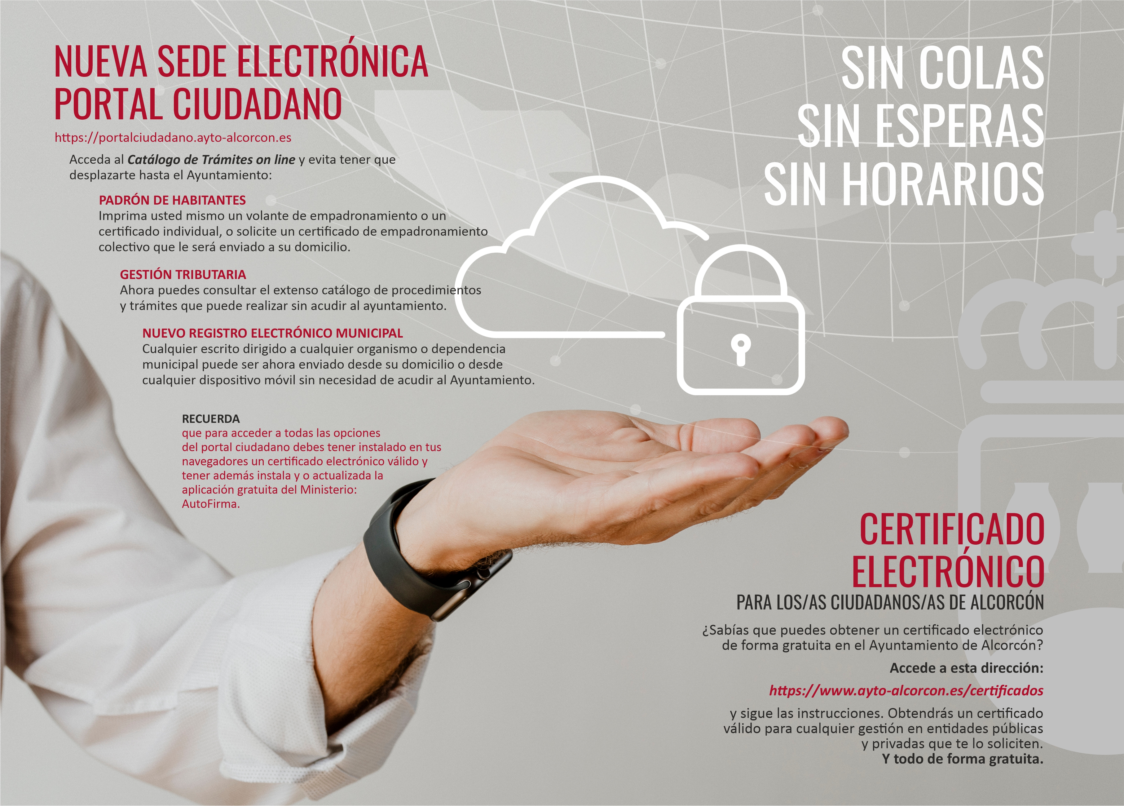 El Ayuntamiento de Alcorcón ha impulsado una campaña para que la ciudadanía conozca un sencillo procedimiento para obtener el certificado digital gratuito, con el fin de realizar trámites administrativos sin colas, sin esperas y sin horarios. “Hemos apostado de forma clara por la administración electrónica y por facilitar el acceso de la ciudadanía a los servicios municipales desde las nuevas herramientas que permiten mayor celeridad, comodidad y reducir los tiempos de atención a los vecinos y vecinas”, ha destacado el concejal de Seguridad, Organización Interna y Atención Ciudadana, Daniel Rubio.