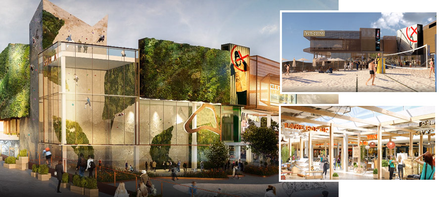 Más de 39.000 m2 en los que, además de diferentes tiendas de moda y restauración, encontraremos una piscina de 20 metros de profundidad en la que se podrá realizar cursos oficiales de submarinismo. Una ola gigante en los que los amantes del surf podrán disfrutar de este deporte sin necesidad de desplazarse al mar. Un lugar de encuentro para los amantes de los deportes extremos con un centro de escalada, un circuito de skate, Bicicross, Crossfit, Parkour, zona de I-games. Y para los amantes del motor, contarán con un espacio dedicado al Coches clásicos y motos.