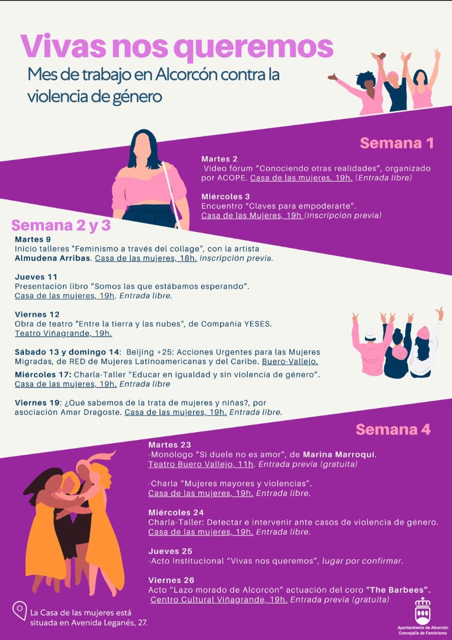 Viernes 26: Acto “Lazo morado de Alcorcón”, actuación del coro “The Barbees”. Centro Cultural Viñagrande. 19H (Entrada previa – gratuita -).
