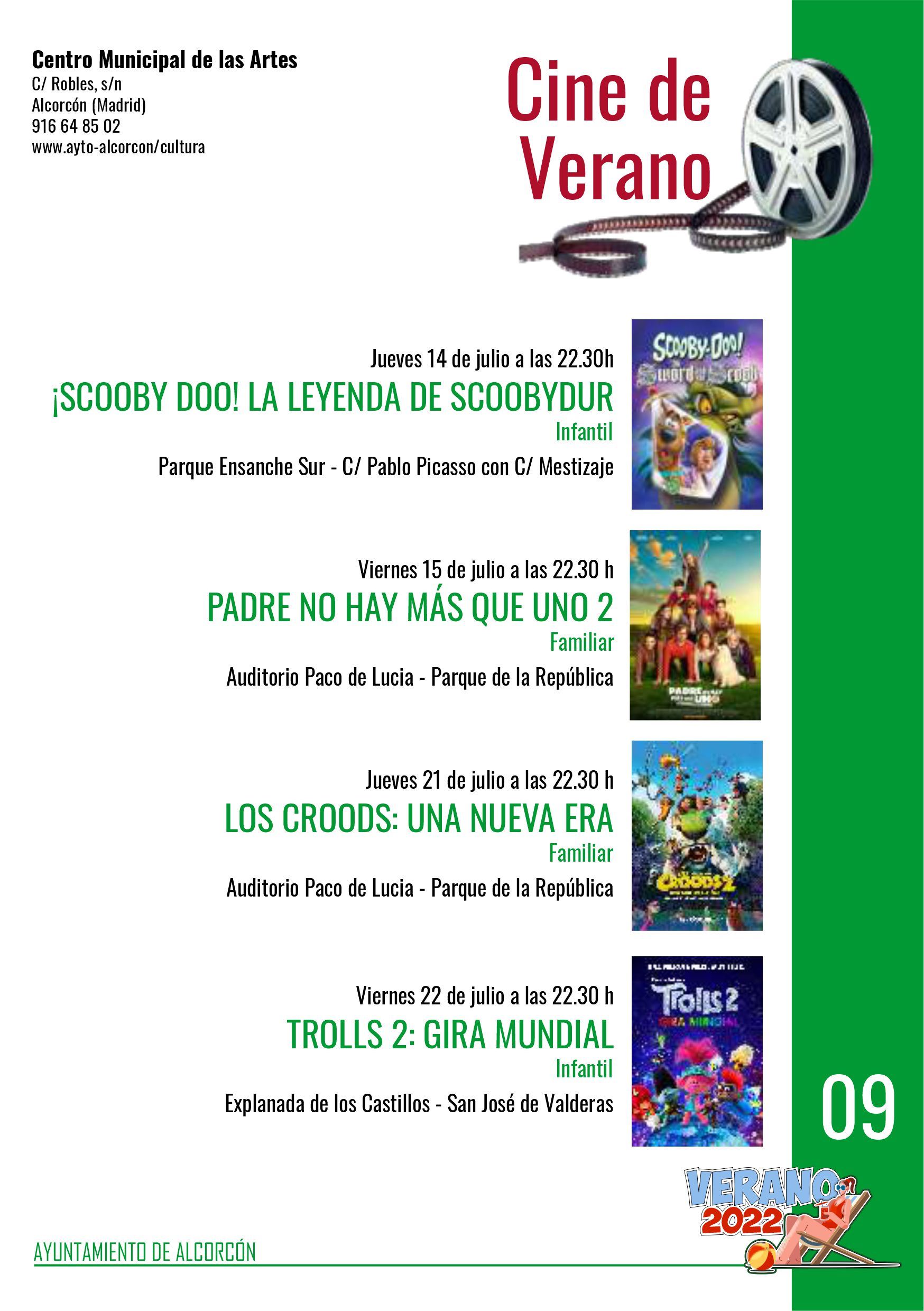 La programación de Cine de Verano se completa con las películas ‘Una nueva era’ (viernes 22 de julio en el auditorio Paco de Lucia) y ‘Trolls 2: gira mundial’ (viernes 22 de julio en la explanada de Los Castillos).