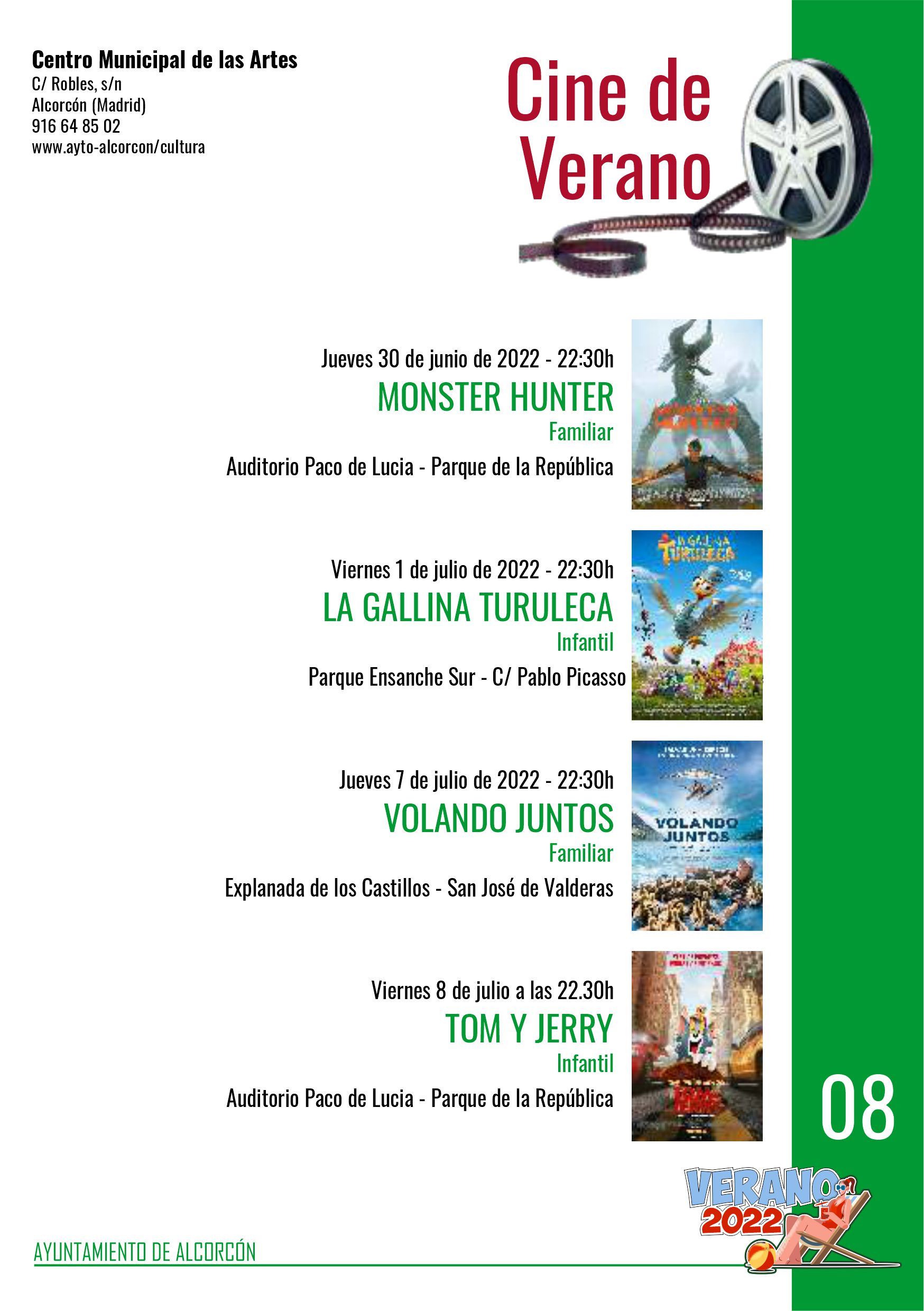 Este jueves comienza el ciclo de Cine de Verano, enmarcado en las actividades del programa ‘Verano 2022’ del Ayuntamiento de Alcorcón. La película ‘Monster Hunter’ dará el pistoletazo de salida esa noche a una completa agenda que recorrerá los diferentes barrios de la ciudad. “Con el fin de llegar a más vecinos y vecinas de la ciudad, hemos ampliado este año el número de proyecciones, así como las ubicaciones en las que se proyectarán las películas”, ha explicado Sonia López, concejala de Cultura, Participación y Mayores, quien ha explicado que el Cine de Verano visitará el auditorio Paco de Lucia del Parque de la Republica, la explanada de Los Castillos, el Parque Darwin y la confluencia de las calles Pablo Picasso y Mestizaje en el Ensanche Sur.