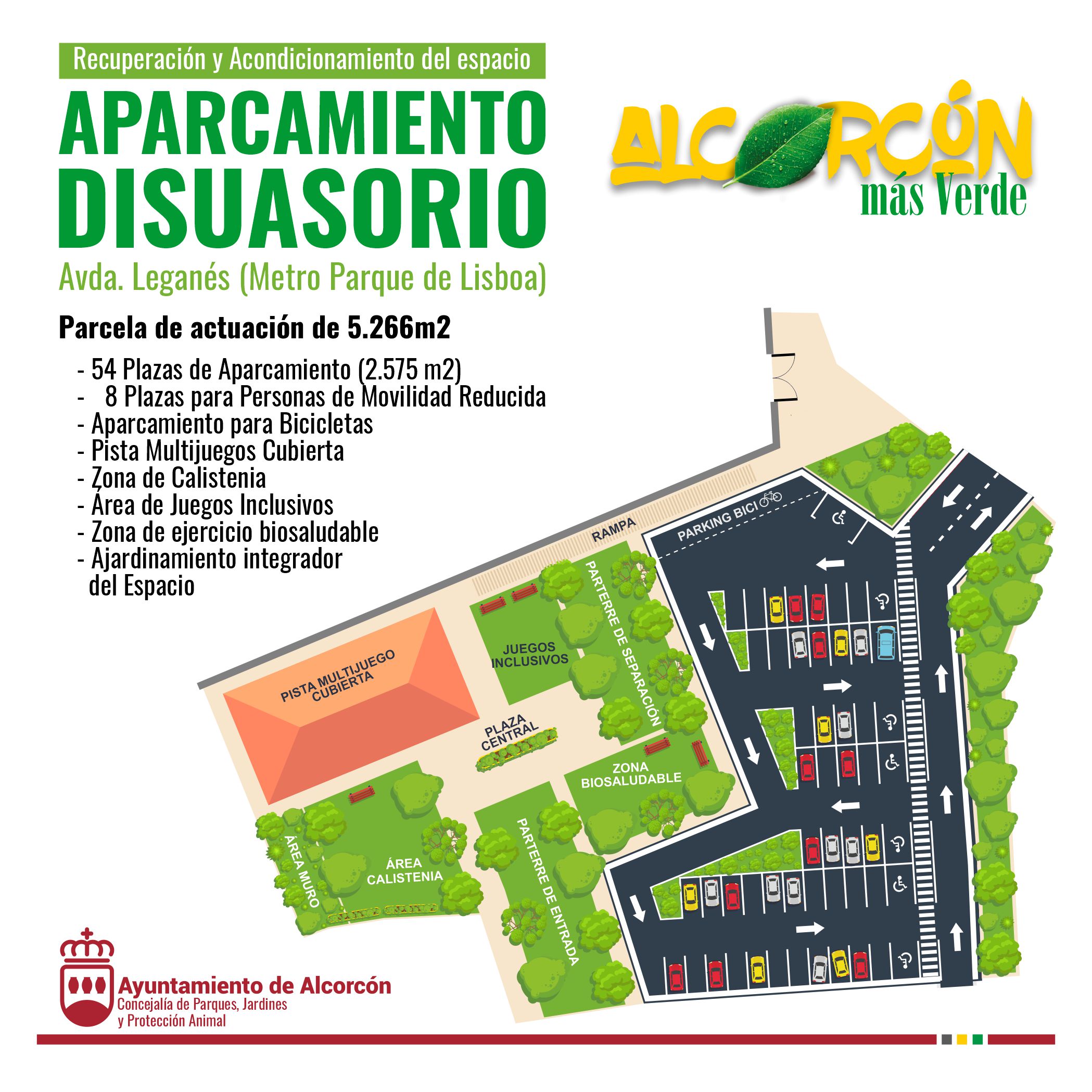 Alcorcón contará con un aparcamiento disuasorio en las proximidades de la estación de metro Parque de Lisboa (en el enclave ubicado entre la avenida de Leganés y la calle Jabonería) con el fin de fomentar el uso del transporte público. Este proyecto se enmarca en las iniciativas subvencionadas a través del Plan de Recuperación, Transformación y Resiliencia del Gobierno de la Nación, por un importe de 1.040.479,82 euros.