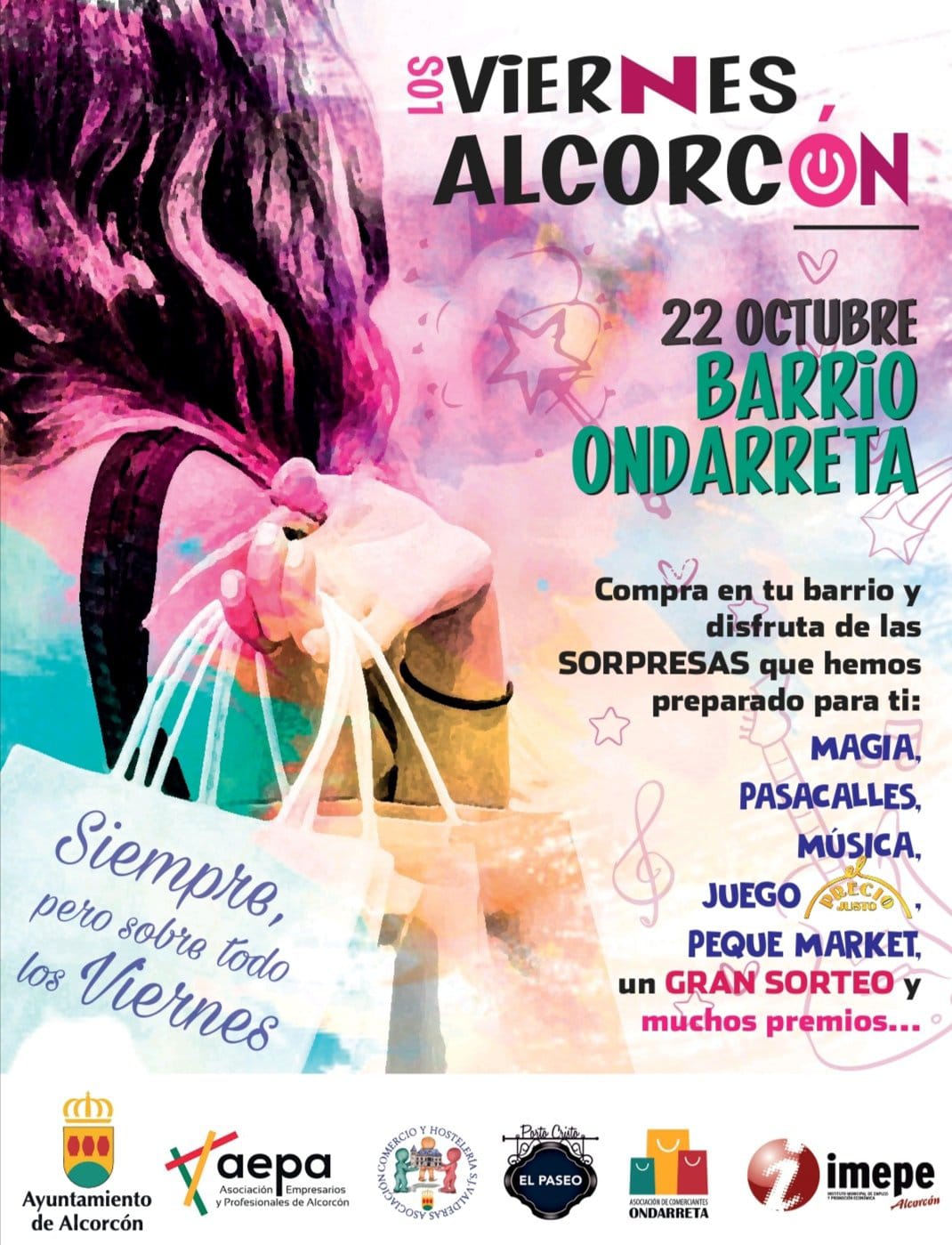 Los viernes de septiembre, octubre, noviembre y diciembre son ideales para salir de compras por nuestra ciudad. Esta es la idea sobre la que el IMEPE Alcorcón, junto a las principales asociaciones de comerciantes de la ciudad, ha trabajado para ofrecer un programa especial de promoción del comercio. La iniciativa consiste en que, hasta final de año, un viernes al mes se realiza una actividad en alguna de las áreas comerciales del municipio.