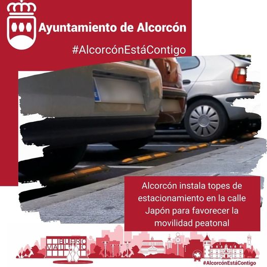 El Ayuntamiento de Alcorcón ha comenzado la instalación de elementos separadores tipo topes en los estacionamientos de la Calle Japón. El objetivo de esta medida es controlar los estacionamientos que introducen partes del vehículo en la acera, impidiendo que invadan la misma y salvaguardando el tránsito de los peatones.