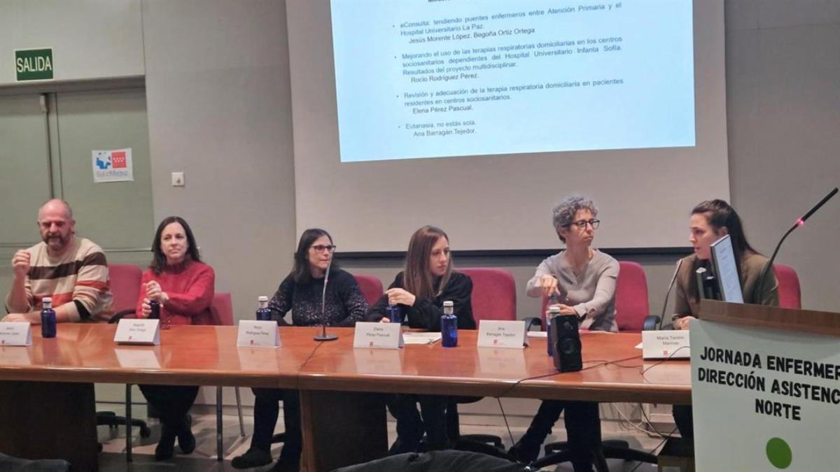 La Dirección Asistencial Norte de Atención Primaria celebró su primera Jornada de Enfermería bajo el lema “Liderazgo en enfermería: juntas hacemos la diferencia”. El evento fue inaugurado por la gerente de Cuidados del Servicio Madrileño de Salud (Sermas), Elena Fernández Cano, la gerente adjunta de Asistencia Sanitaria de la Gerencia Asistencial de Atención Primaria, Paloma Santos Álvarez, y la directora asistencial médico de la Dirección Asistencial Norte, Mª Dolores Cano Pérez.
