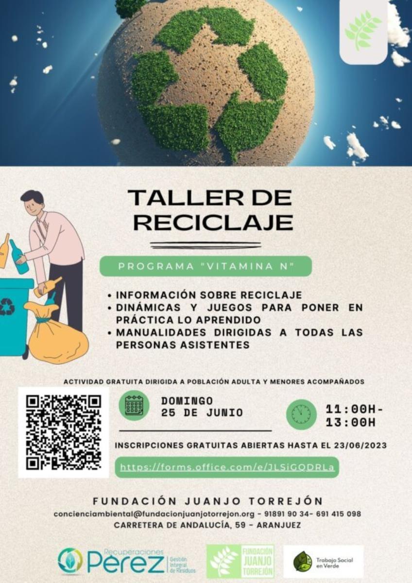 Desde Fundación Juanjo Torrejón se llevará a cabo, el domingo 25 de junio, un taller de reciclaje que promete ser una sesión de lo más instructiva y amena. Con el objetivo de generar un espacio comunitario donde compartir información y actividades relacionadas con el reciclaje, esta actividad se efectúa en colaboración con Recuperaciones Pérez.