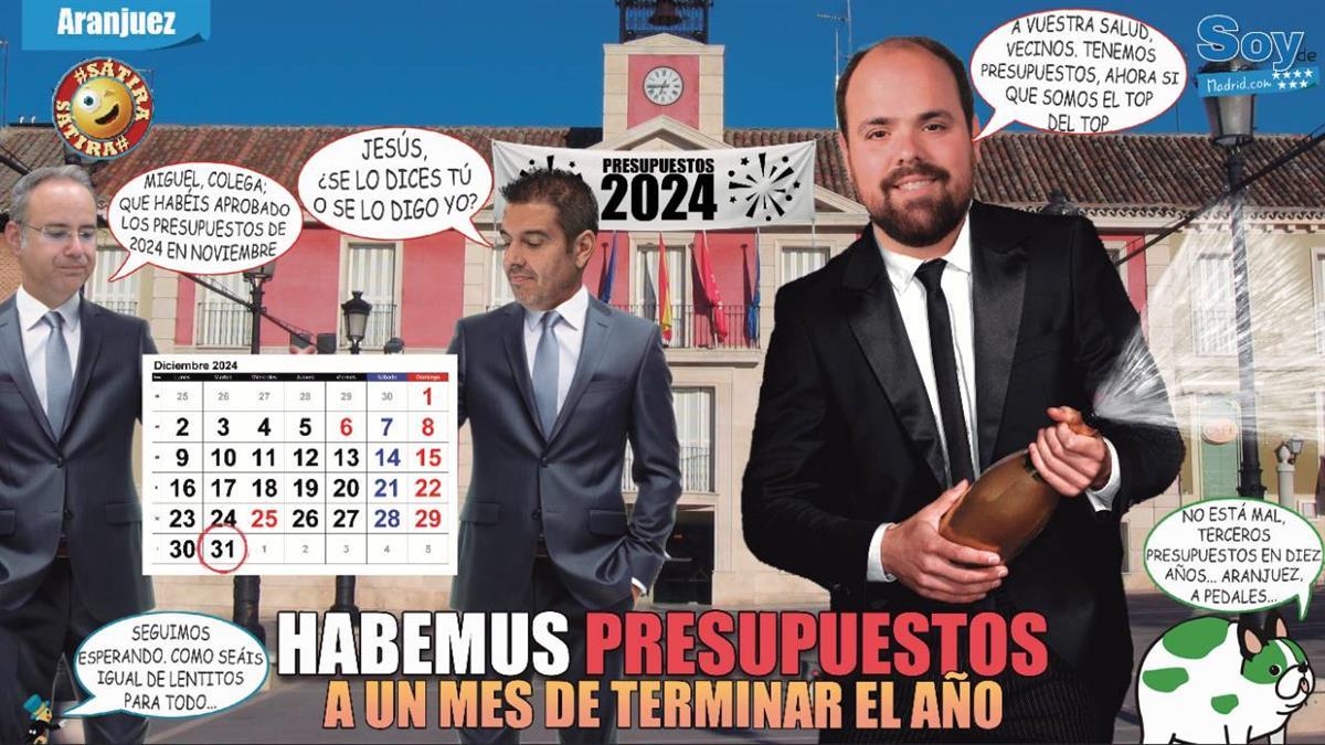 Con ironía, desde la agrupación local ACIPA desmienten que se trate de una errata: "Aranjuez ha aprobado sus Presupuestos para 2024 en noviembre", subraya el portavoz del grupo, Jesús Blasco. Unas cuentas que llegan tarde, pero que siguen el habitual ritmo del consistorio ribereño que "solo ha sido capaz de sacar adelante tres Cuentas en diez años".