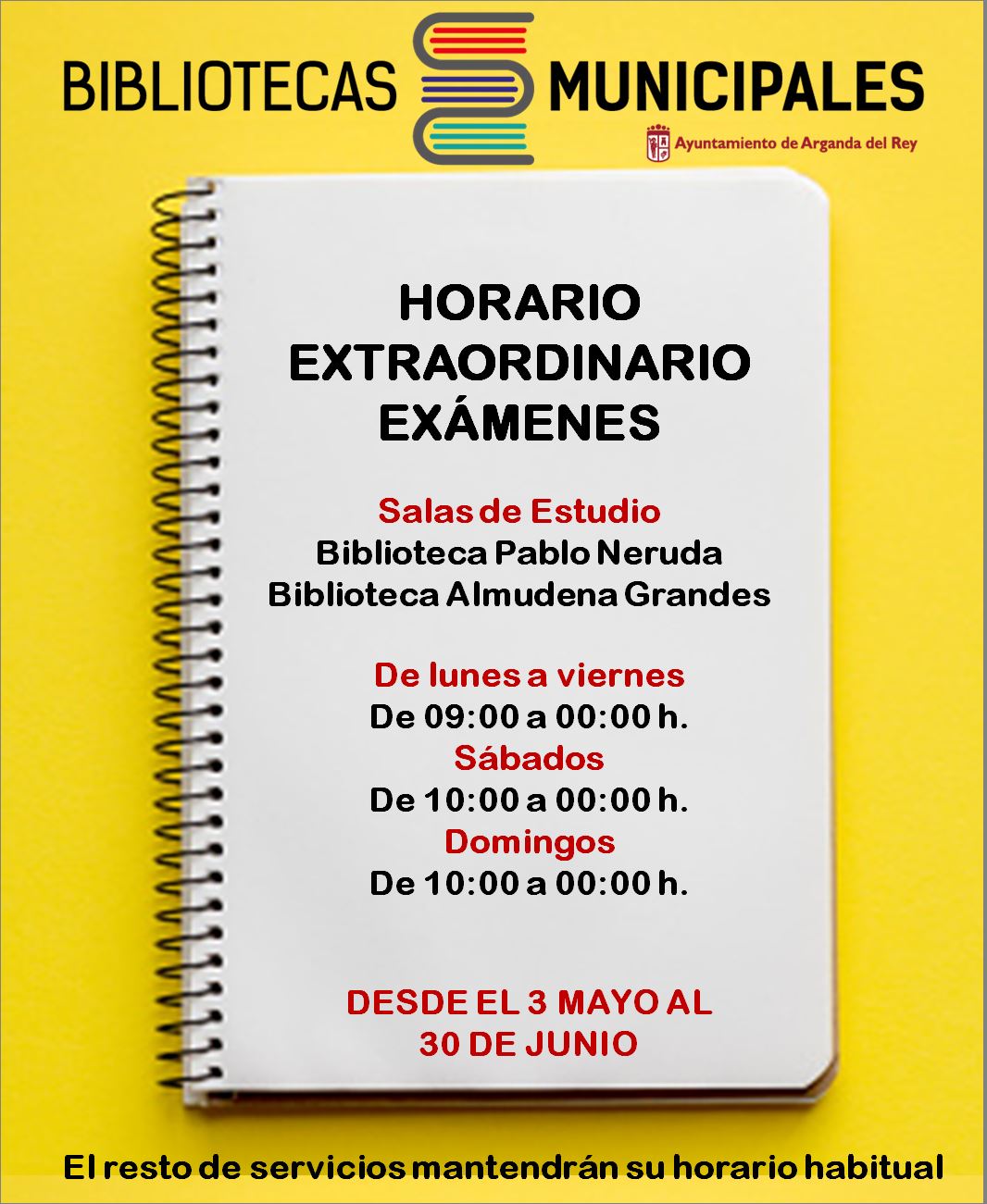 Por el período de exámenes, las salas de estudio de la Biblioteca Municipal Pablo Neruda y de la Biblioteca Municipal Almudena Grandes de La Poveda tendrán un horario extraordinario de apertura.
