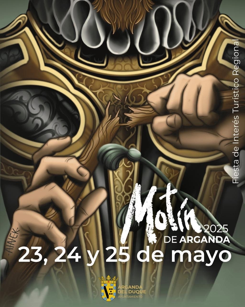 Presentado el cartel que ilustrará la edición 2025 del Motín de Arganda. Un trabajo que corre a cargo de la artista argandeña Ainek y que dibuja en primer plano una imagen icónica de lo que representa este momento que marcó para siempre la historia de Arganda del Rey.