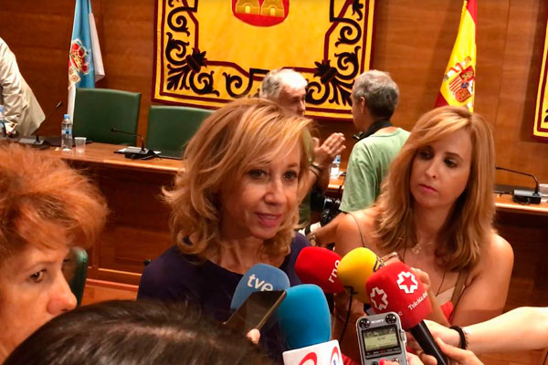 La portavoz del PSOE, Pilar Sánchez Torres, durante su comparecencia a los medios en el Salón de Plenos