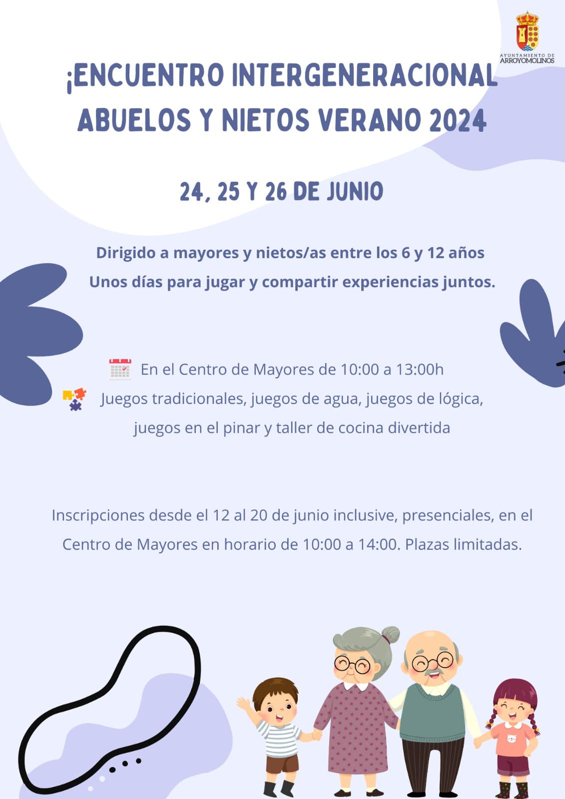 Asimismo, durante los días 24, 25 y 26 de junio abuelos y nietos podrán pasar una mañana de encuentro y diversión para crear vínculos más fuertes entre ellos. Dirigida a mayores y nietos y nietas entre los 6 y 12 años, la propuesta se realizará en el Centro de Mayores de 10 a 13, e incluye juegos tradicionales, de agua, de lógica y taller de cocina. Las inscripciones estarán abiertas hasta el 20 de junio en dicho espacio y en horario de 10 a 14.