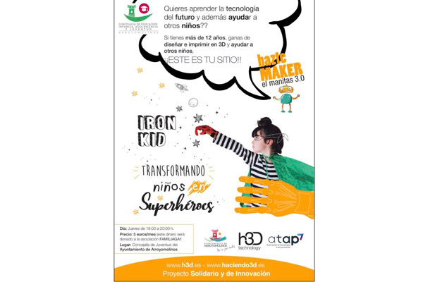 El Consistorio arroyomoliniense, a través de la concejalía de Educación, Infancia, Adolescencia y Juventud, en colaboración con la Asociación Familia GA1, la empresa h3D y la Asociación Acercando la Tecnología a las Personas, son los encargados de promover la iniciativa Iron Kid.
