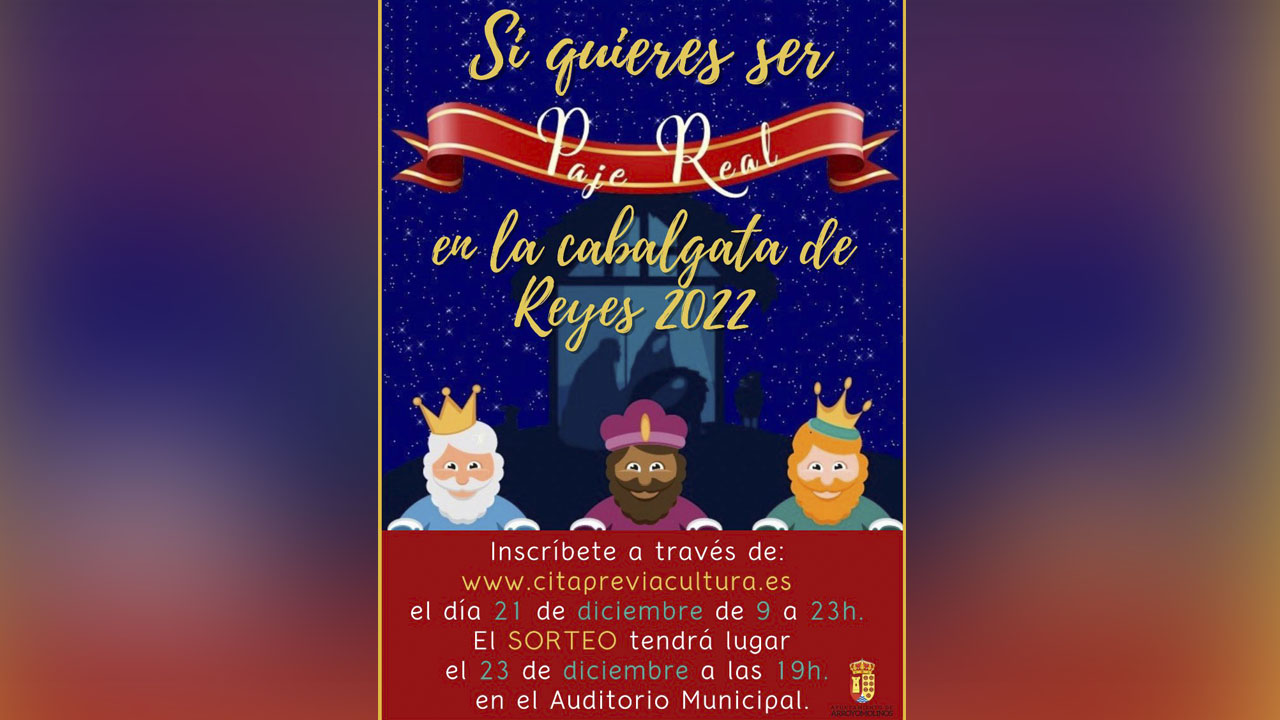 El Ayuntamiento de Arroyomolinos ha anunciado que mañana martes, día 21 de diciembre, se realizarán online las inscripciones para participar en el sorteo de varias plazas de Paje Real en la Cabalgata de Reyes que recorrerá la tarde del próximo día 5 de enero las calles más importantes del municipio arroyomolinense. Así, las personas mayores de 4 años que estén interesadas en participar, tendrán que entrar mañana de 9:00 a 23:00 horas a la página Web www.citapreviacultura.es , y rellenar sus datos personales para entrar en el sorteo. Dicho sorteo tendrá lugar el jueves día 23 de diciembre a las 19:00 horas en el Auditorio Municipal de la localidad madrileña.