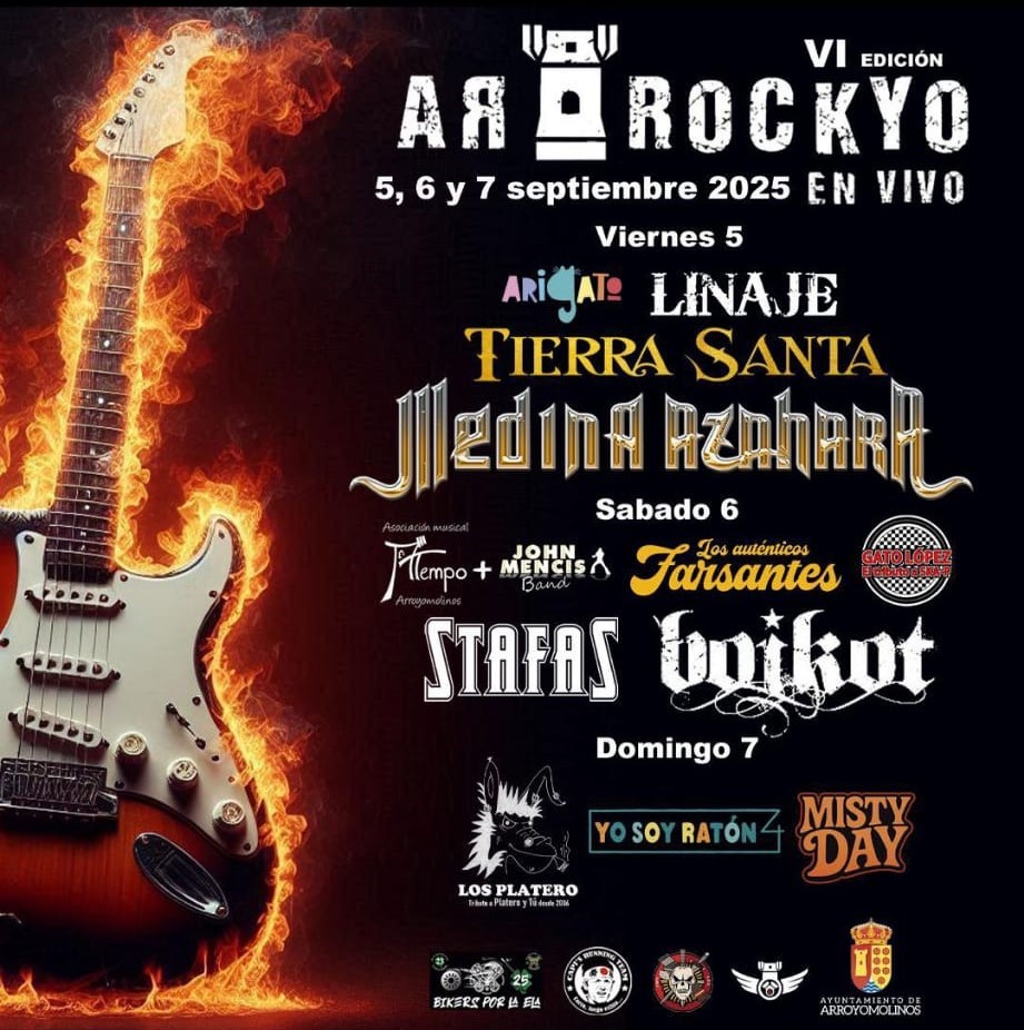 Cartel de lujo, una vez más, en la sexta edición del Arrockyo en Vivo. Este evento gratuito, organizado por las Concejalías de Juventud y Desarrollo Local, y presentado por una servidora, contará con las actuaciones de Medina Azahara, Tierra Santa y Linaje, bandas que se subirán al escenario del recinto ferial el 5 de septiembre -jornada que arrancará con el espectáculo infantil 'Arigato'-.