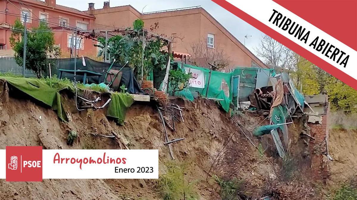 Detrás de las sonrisas de este equipo de gobierno se oculta una realidad bien distinta, una “Senda Trágica” que sufren los vecinos de la Calle Álamo y Alameda desde hace más de dos años. Dos años pidiendo socorro, porque en este tiempo los diferentes temporales de nieve y lluvia se han llevado parte de sus parcelas y construcciones, que hoy yacen en el arroyo, y sus casas se agrietan día a día. El pasado 13 de diciembre la crecida del arroyo se llevó el puente y parte de las construcciones de las parcelas, y seguirá pasando, las prometidas obras de contención no llegan y los vecinos se desesperan.