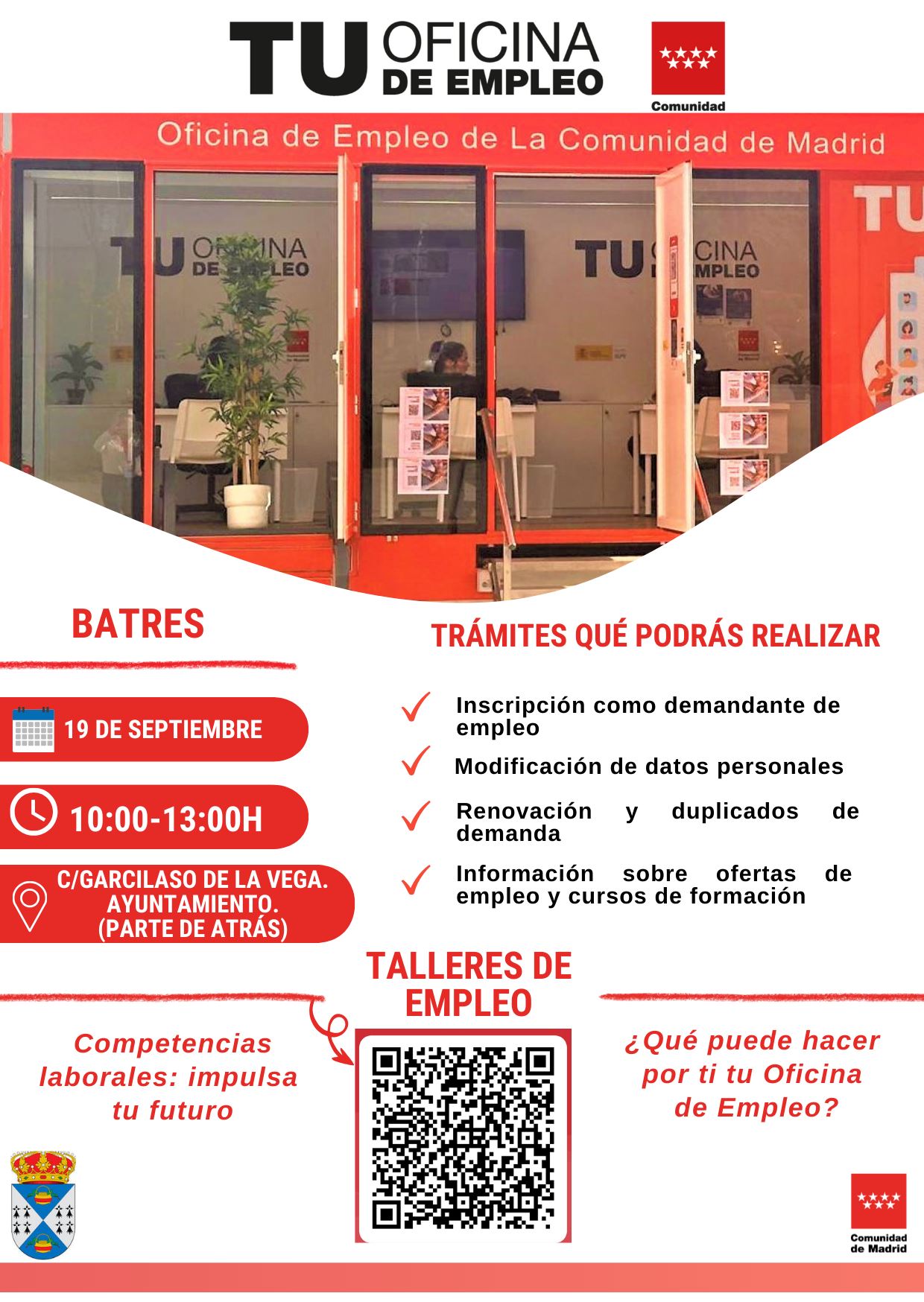 La Oficina de Empleo de la Comunidad de Madrid visitará el municipio