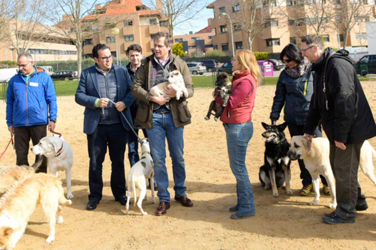 El alcalde con algunas mascotas en el área canina Jorge Manrique
