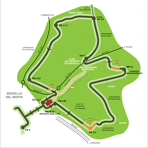 El concejero de Transportes, Vivienda e Infraestructuras, ha recordado que esta nueva ruta permitirá a los usuarios disfrutar de varios puntos interesantes desde el punto de vida histórico y paisajístico, como la Casa de Campo, parte de la Red de Cañadas de la Comunidad, el Monte de Boadilla o el Palacio del Infante Don Luis de Borbón.