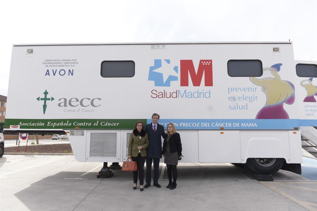 El alcalde de Boadilla del Monte, Antonio González Terol, no ha querido desaprovechar la ocasión de visitar a los profesionales sanitarios que se encargan de realizar las mamografías, acompañado por la concejala de Sanidad, Raquel Araguas, y de la presidenta de la AECC Boadilla, Pilar Fernández.