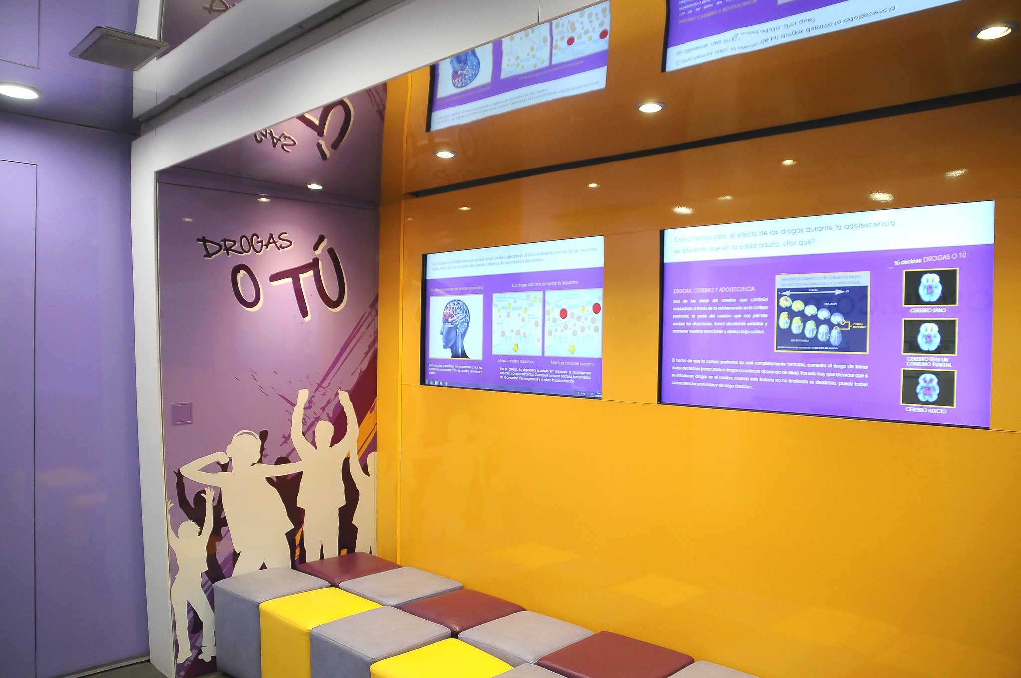 Cuenta con material audiovisual e interactivo mediante el que educadores especializados trasladan toda la información, con una metodología dinámica que pretende favorecer actitudes contrarias al consumo de drogas.