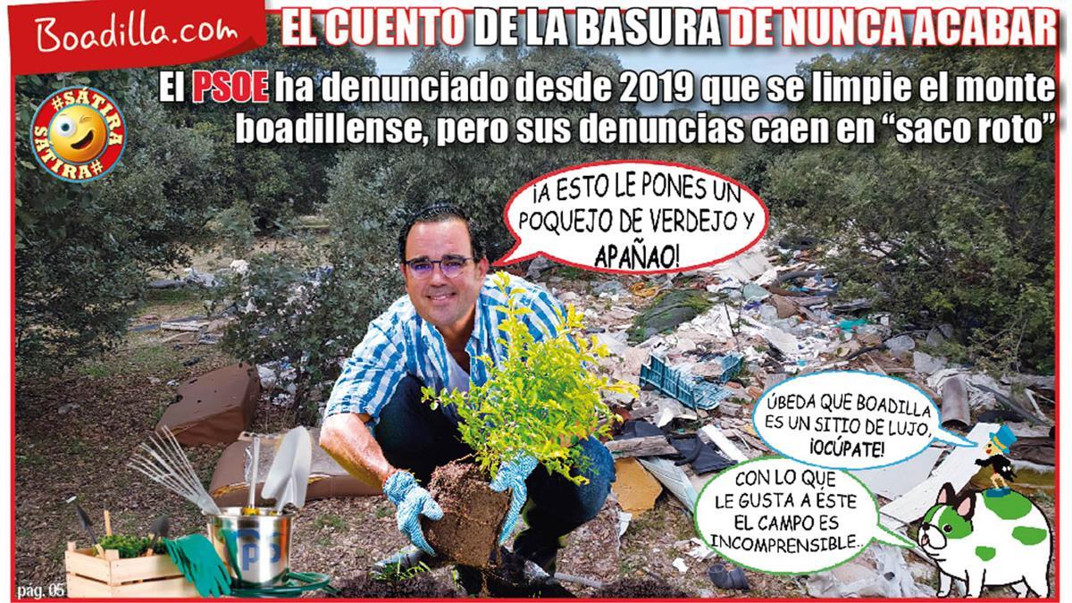 Sorprendentemente, cuentan los socialistas, en abril de 2023, se vuelve a constatar que todo sigue igual, ya sea porque el Ayuntamiento de Boadilla del Monte no ejerce su deber, o porque nunca hubo requerimiento alguno, lo cierto es que cuatro años después de la primera denuncia dicho espacio natural se encuentra lleno de desperdicios y basura.