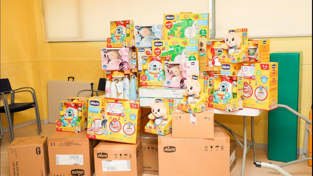 La marca Chicco ha donado juguetes y productos de cosmética infantil por valor de 3000 euros para distribuir entre los niños ucranianos desplazados hasta el momento a Boadilla del Monte.