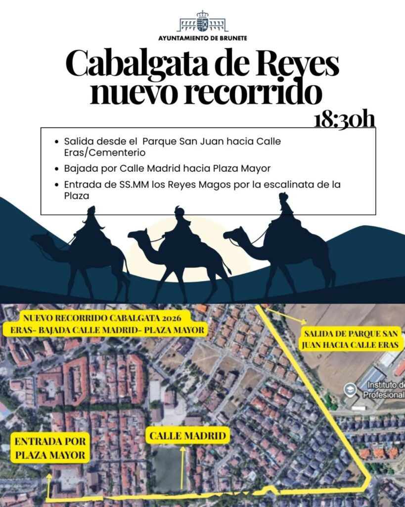 ¡Cuenta atrás para la celebración de una de las noches más mágicas del año! El próximo 5 de enero a las 18:30 sus Majestades los Reyes Magos de Oriente visitarán las calles de Brunete para saludar a los más pequeños durante la Gran Cabalgata