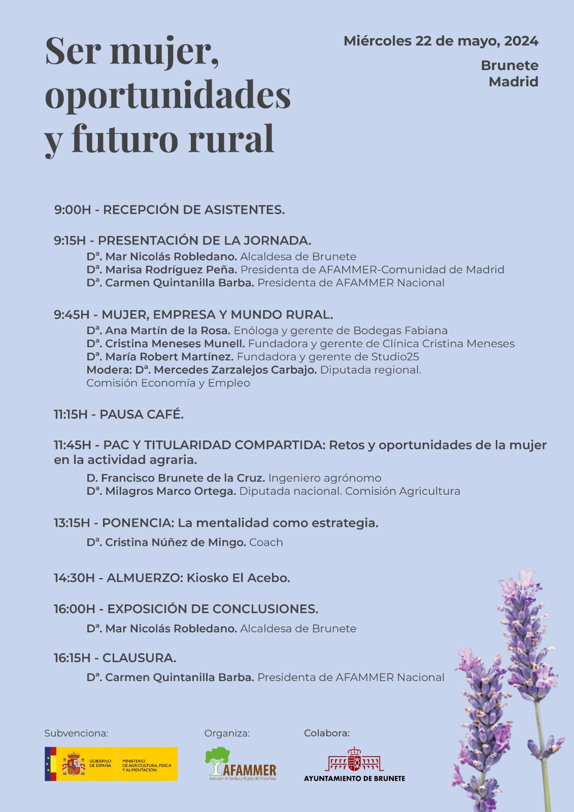 El Ayuntamiento de Brunete tienen el placer de  invitarte a la jornada de liderazgo femenino que celebra la Asociación vecinal Afammer Comunidad de Madrid el próximo día 22 de mayo.