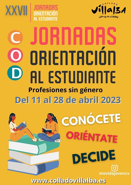 Del 11 al 28 de abril se celebran en Collado Villalba las XXVII Jornadas de Orientación al Estudiante bajo el lema “Conócete, Oriéntate y Decide. Profesiones sin género”.