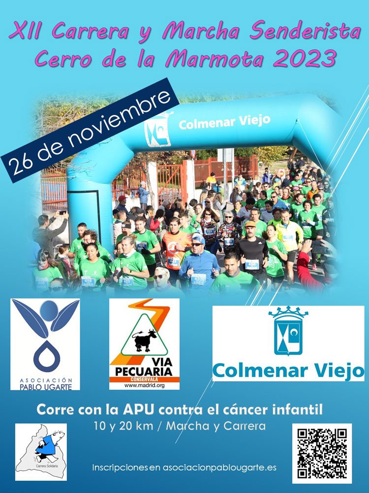 ¿Todavía no tienes planes para el día 26 de noviembre? Guarda la fecha porque Colmenar Viejo celebra la XII Carrera y Marcha Senderista Cerro de la Marmota 2023. Se trata de un evento que organiza la Asociación Pablo Ugarte (APU), junto con el Consistorio y cuya recaudación se dedicará íntegramente a la lucha contra el cáncer infantil.