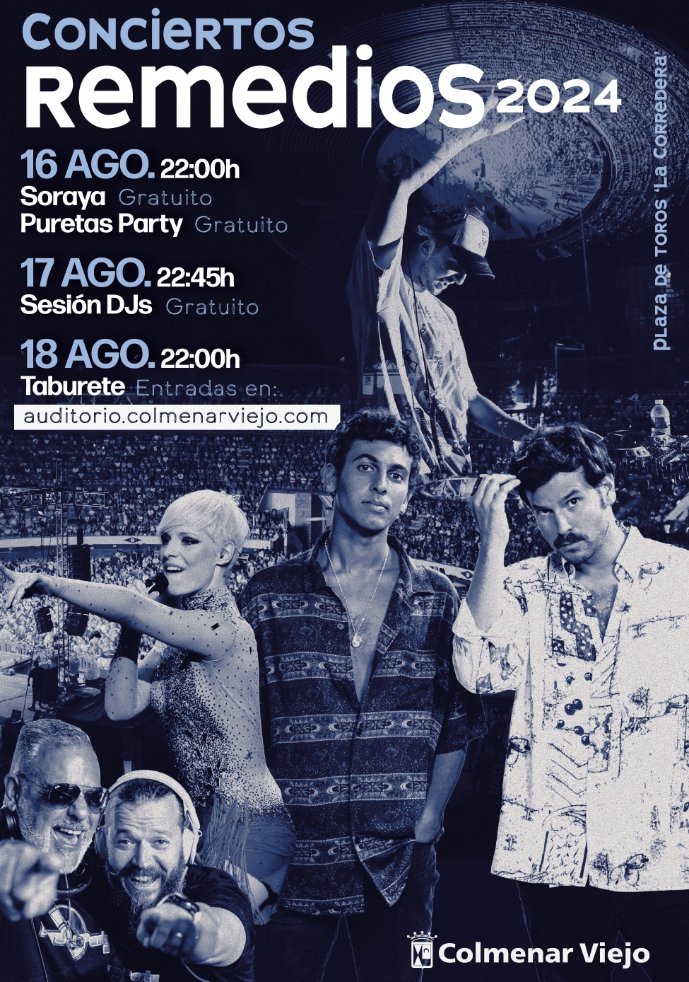 Colmenar Viejo celebra sus Fiestas Patronales en Honor a la Virgen de Los Remedios del 23 al 27 de agosto, con una programación repleta de actividades pensada para el disfrute de todos los vecinos y visitantes. Los Conciertos de Remedios 2024, que arrancan el viernes 16 de agosto en la Plaza de Toros, darán el pistoletazo de salida a estos días de celebración.