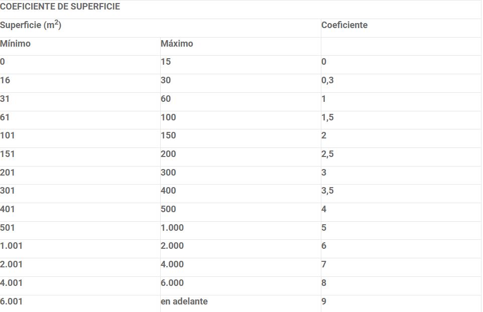 Por su parte, el coeficiente de extensión establecido en función de la superficie del local en que se desarrolla la actividad se aplicará en aquellos inmuebles en los que conste la realización de una actividad económica, y se determinará en función del número de metros cuadrados de la construcción en la que se desarrolla dicha actividad, de la siguiente manera: