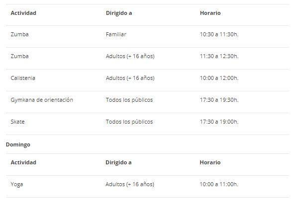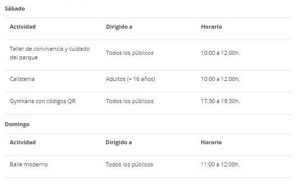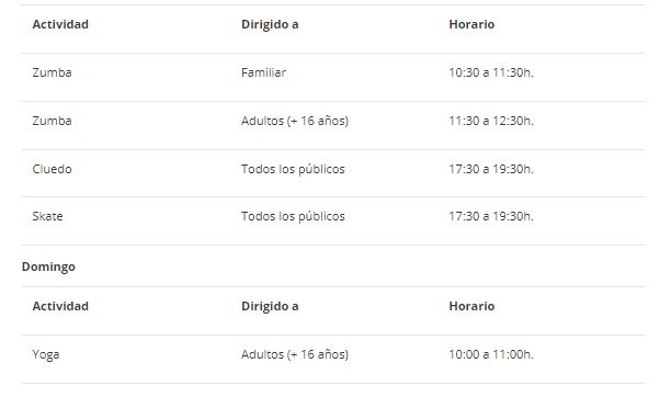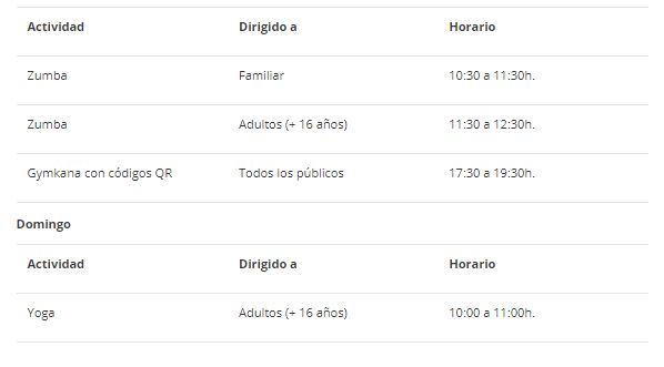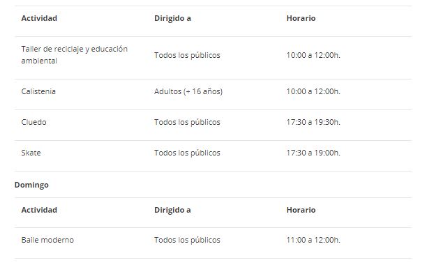 Esta será la organización y horarios de talleres, cursos y actividades, dividida por grupos de edad y temática, con el fin de que tengan la mejor aceptación posible: