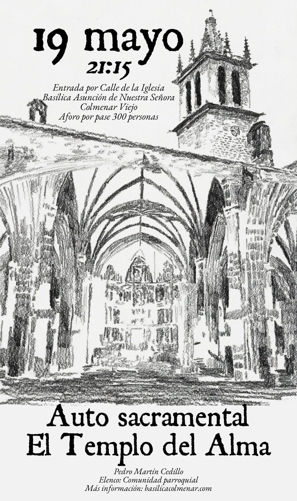 Siguiendo en el Día de los Museos, el viernes El Templo del Alma en la Basílica de la Asunción de Nuestra Señora, una mirada al pasado histórico y cultural de la misma. Un pequeño grupo de personas de la comunidad parroquial mostrará a través de un auto sacramental la contemplación de este templo. Se realizarán varios pases, el primero comienza a las 21:15h. Entrada por la calle de la Iglesia.