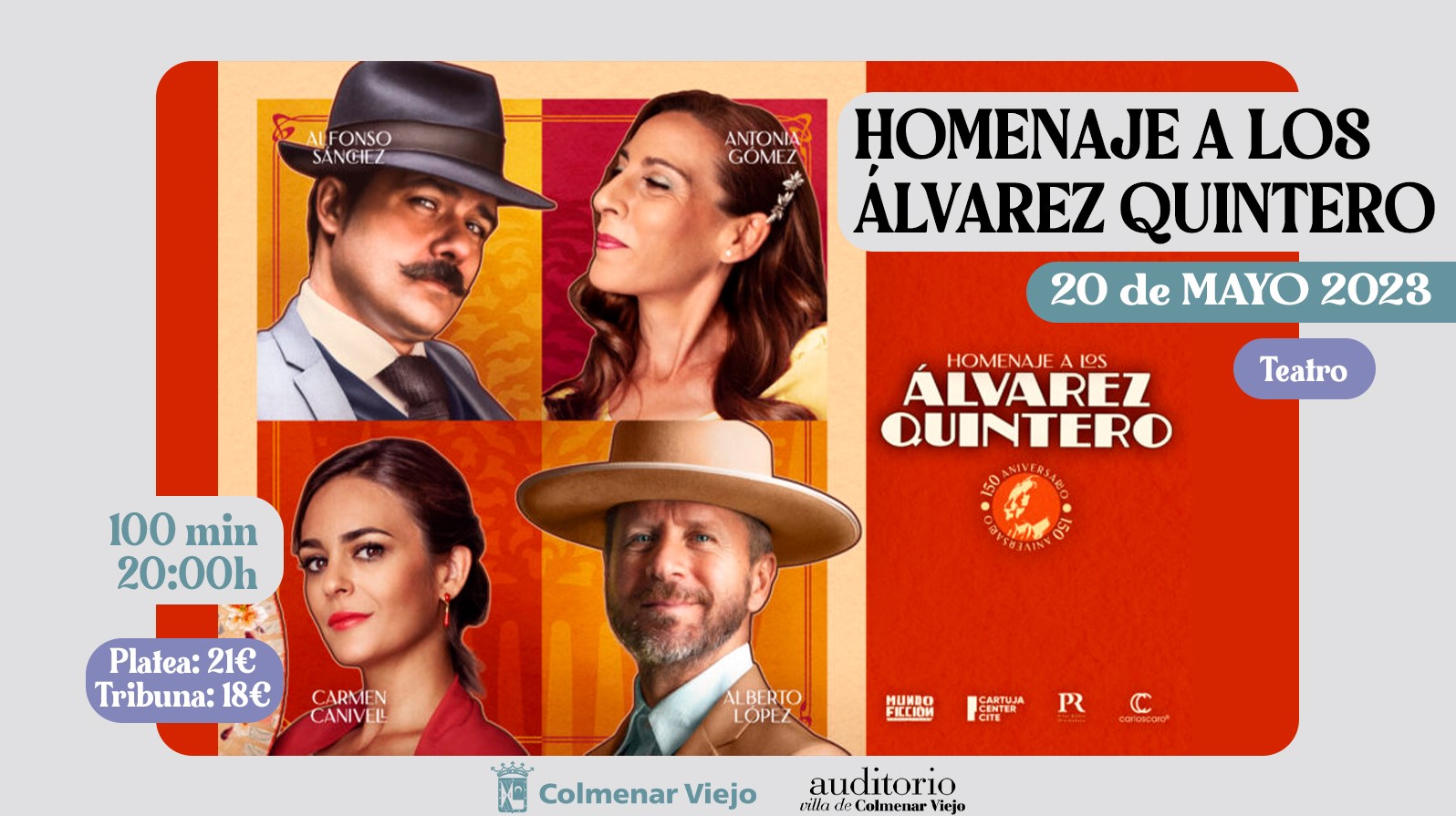 La tarde del sábado en el Auditorio, a las 20:00h. teatro con el Homenaje a los Álvarez Quintero. Entradas: Platea 21€ | Tribuna 18€