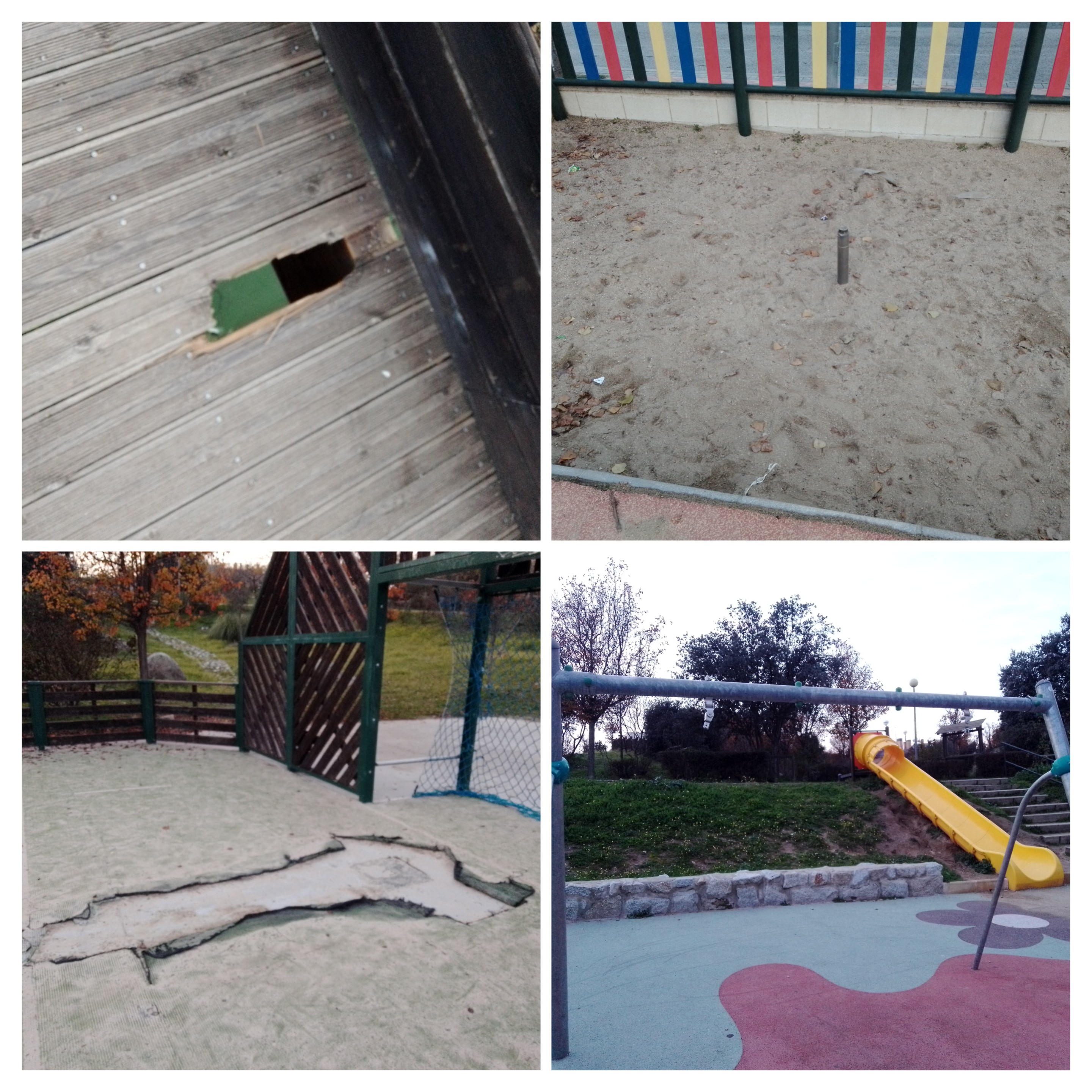 La Asociación de Vecinos por Colmenar Viejo ha recibido la preocupación de los vecinos del barrio de la Estación que denuncian la falta de mantenimiento en el parque Doctor Bachir. "Una rápida visita permitió comprobar que varios juegos infantiles se encuentran inutilizados y averiados, alguno de ellos a punto de desmoronarse. Igual ocurre con el arenero del parque, donde la arena brilla por su ausencia y del juego infantil de la pala excavadora tan solo queda el eje metálico que debiera soportarlo. La tirolina, los columpios o balancines tienen elementos rotos. Se aprecia especialmente que las piezas de sujeción están rotas, lo que impide a los niños disfrutar de ellos. Por si fuera poco, en uno de los accesos que corresponde al puente de madera sobre la antigua cantera que existía en las proximidades, hay un agujero que es un riesgo para las personas que transiten por esa vía", informan desde la asociación.