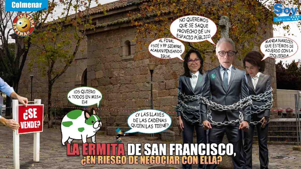 Lo que contempla este expediente supondría el cambio de la Ermita de San Francisco de Bien Público a Bien Patrimonial; es decir, "pasa a ser susceptible de negocio y por ende, el ayuntamiento podría vender, alquilar o permutar el recinto". Esta modificación para Ganemos Colmenar "no tiene encaje en la normativa vigente y es contrario al principio de protección del patrimonio público que debe guiar la acción de los servidores públicos", subraya Gil. La cuestión se llevó a pleno y el edil confiesa sentirse sorprendido porque "no entiende la estrategia" del Partido Popular de Carlos Blázquez; pero los dardos no han ido en una única dirección, Ganemos también echa en cara el papel que ha jugado el PSOE y les pone deberes.