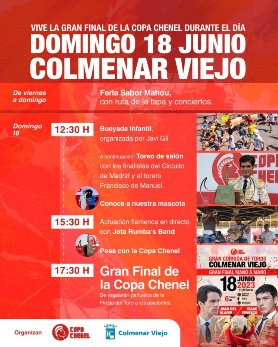 En cuanto a la final de la tercera edición Copa Chenel, va a convertir a Colmenar Viejo en el punto de encuentro de miles de aficionados a la cultura de la tauromaquia y, debido a esto, se han programado actividades para todas las edades con el fin de generar un ambiente festivo.