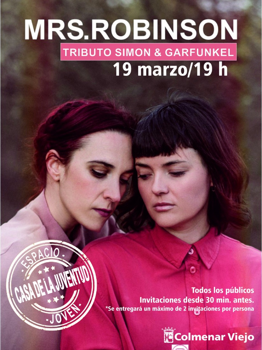 El sábado en la Casa de la Juventud, concierto para todos los públicos con los temas de Simon & Garfunkel interpretados por Mrs. Robinson, el proyecto de María Blanco (Mäbu) e Icíar Ybarra (Gaudea) que rinde tributo a uno de los dúos más influyentes de folkpop de todos los tiempos. Comienza a las 19:00h. con entrega de invitaciones desde media hora antes (dos por persona).