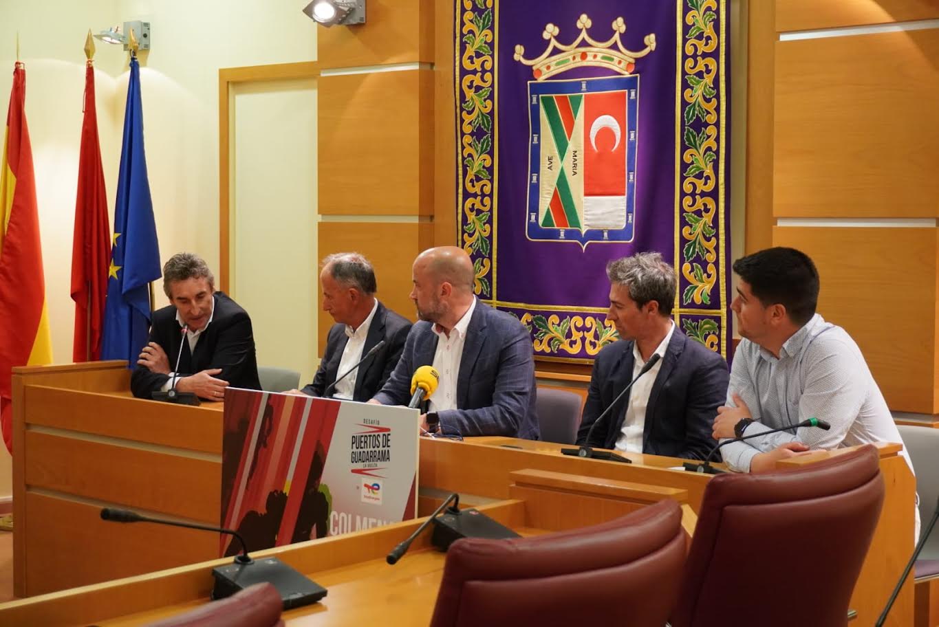 El alcalde de Colmenar Viejo, Jorge García Díaz, y el concejal de Deporte, Jorge Domínguez Jiménez, han presentado junto al presidente de la Federación Madrileña de Ciclismo, José Vicioso, el afamado escalador de los 90 y director técnico de La Vuelta, Fernando Escartín y el presidente de TotalEnergies, Electricidad y Gas, Javier Sáez de Jubera, la X Edición de la prueba cicloturista Desafío Puertos de Guadarrama By TotalEnergies que alcanza ya los 1.000 inscritos y se realizará el sábado 14 de mayo con salida y llegada a Colmenar Viejo.