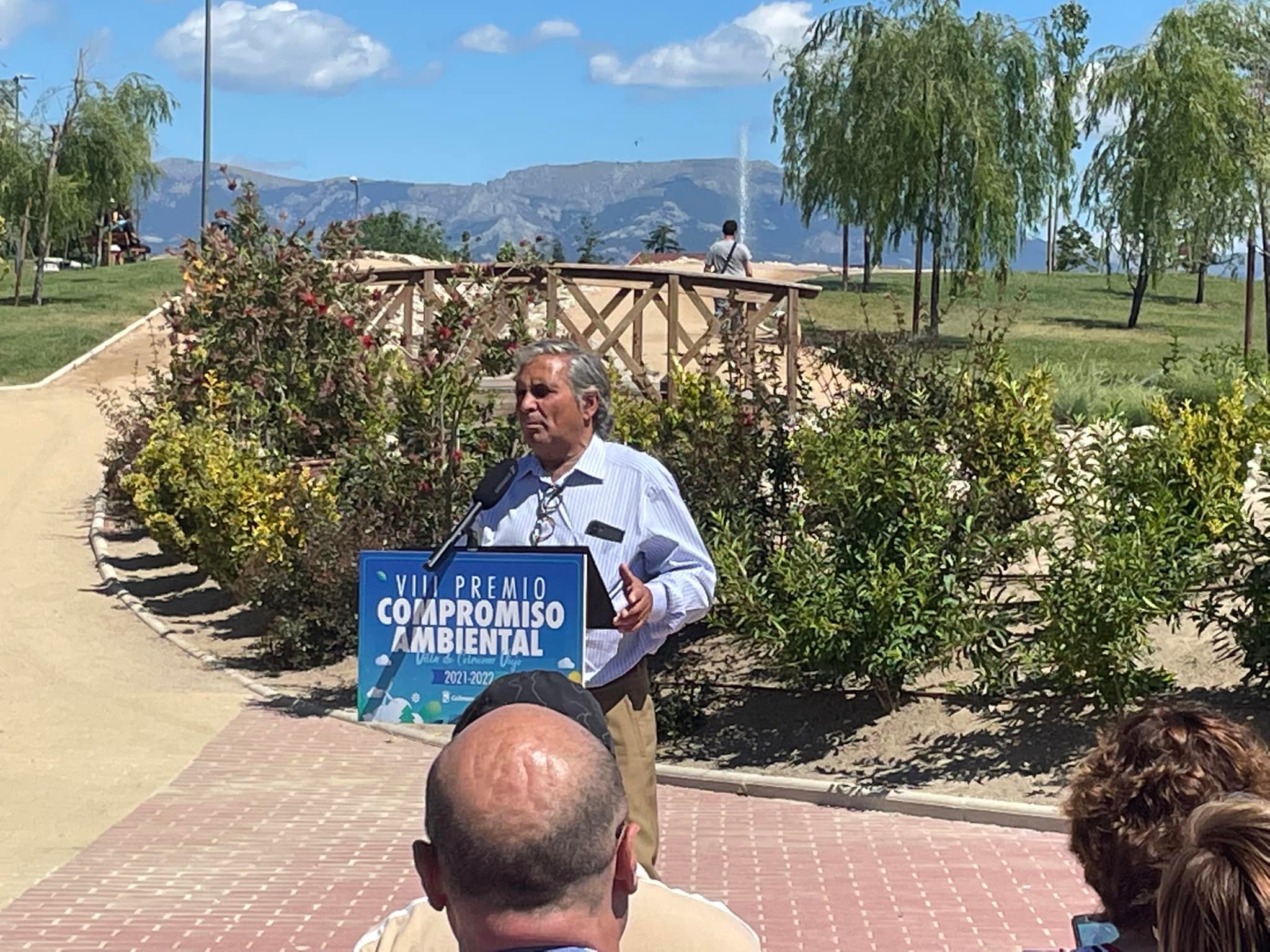 El alcalde de Colmenar Viejo, Jorge García Díaz, y el concejal de Medio Ambiente, Felipe Mansilla Nogales, entregaron de ayer en el Parque de los Héroes, coincidiendo con el Día Mundial del Medio Ambiente, el VIII Premio de Compromiso Ambiental Villa de Colmenar Viejo a Manuel Sanz de la Morena, propietario de la Ganadería Los Eulogios.