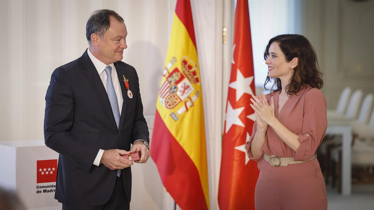 La presidenta de la Comunidad de Madrid, Isabel Díaz Ayuso, ha entregado hoy la Medalla de Plata de la Comunidad de Madrid al astronauta Miguel López Alegría, que recibió el pasado Dos de Mayo, en la festividad de la región, pero que no pudo recoger al encontrarse participando en la primera misión espacial privada de la historia.