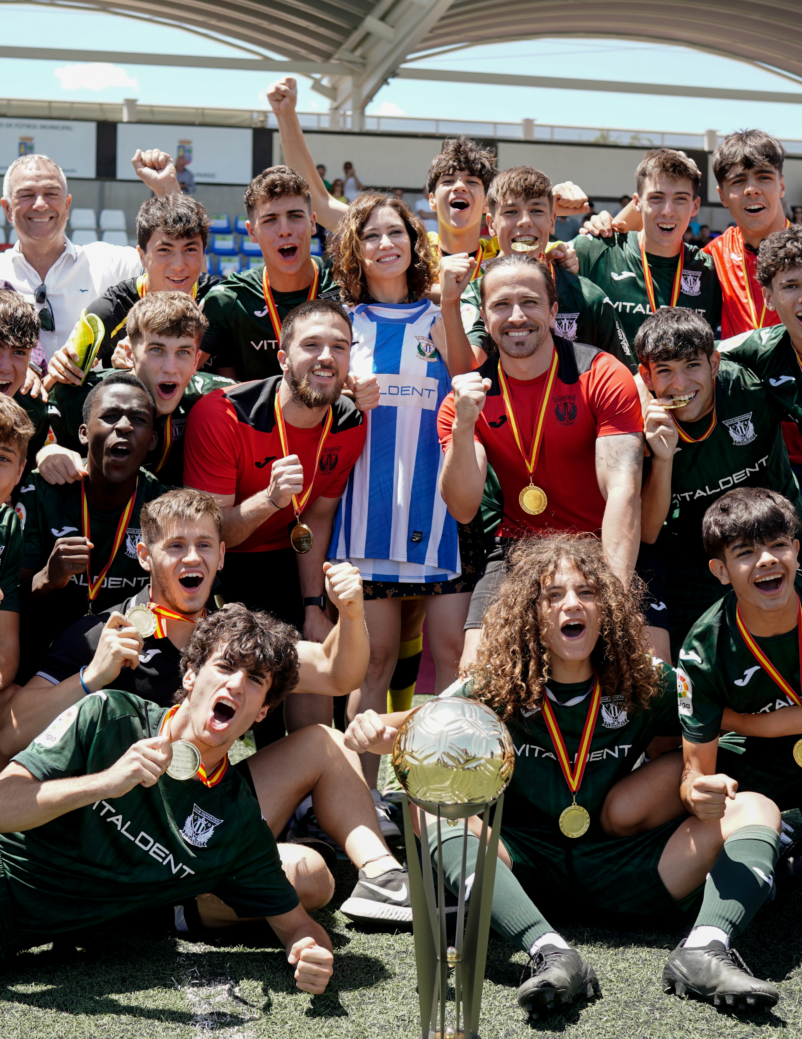 La presidenta de la Comunidad de Madrid, Isabel Díaz Ayuso, ha recogido hoy el galardón del VI Torneo de Fútbol Cadete Vicente del Bosque en reconocimiento a su apoyo al deporte en la región y a esta competición. Asimismo, ha sido la encargada de realizar el saque de honor de la final del Torneo masculino.