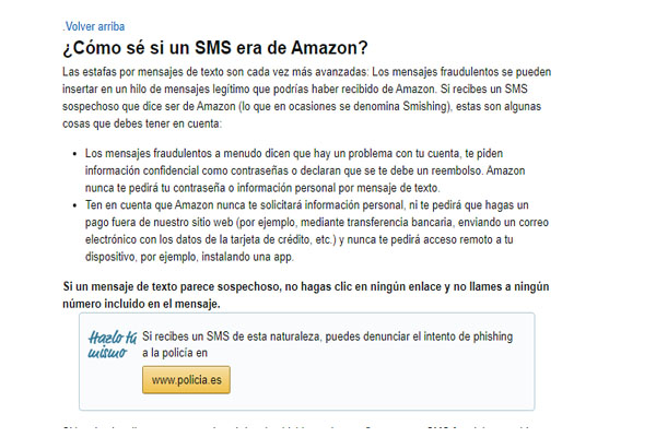 Además, según los agentes es mejor que la persona afectada se ponga en contacto con Amazon para corroborar este SMS.