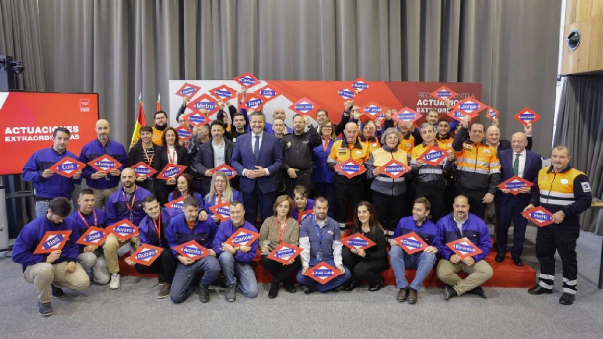 La Comunidad de Madrid ha reconocido a los 60 voluntarios de Metro que colaboraron en las tareas de recuperación de las zonas afectadas por la DANA de Valencia, 10 de ellos empleados del área de mantenimiento de instalaciones del suburbano, que realizaron labores de bombeo, y otros 50 que llevaron a cabo trabajos de limpieza.