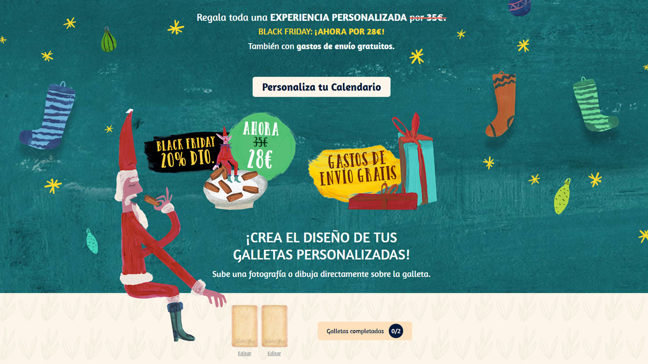 Si ya tienes un café de confianza y prefieres algo para acompañarlo Tosta Rica te acerca un calendario de adviento con tus galletas favoritas. Cada día dispone de una pestaña que contiene dos galletas. Un total de 48 unidades entre las que se encuentran escondidas tus propios diseños que puedes mandarles. Junto a estos, hay otras 22 ilustradas con mucho cariño por La Casa de Carlota: Un equipo de diseño con incorpora a personas con Síndrome de Down y Autismo entre sus profesionales.