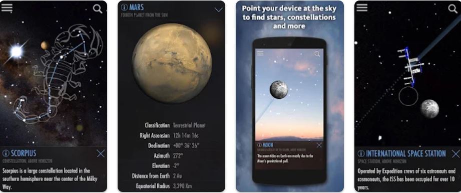 Puedes encontrar constelaciones, planetas, o cualquier estrella que estés viendo en ese momento, a medida que aparecen y desaparecen mientras escaneas el cielo. También puedes descubrir nuevas galaxias a cientos de miles años luz, ver sobrevolar los satélites o quién sabe... ¡Ser testigo de OVNIS!
